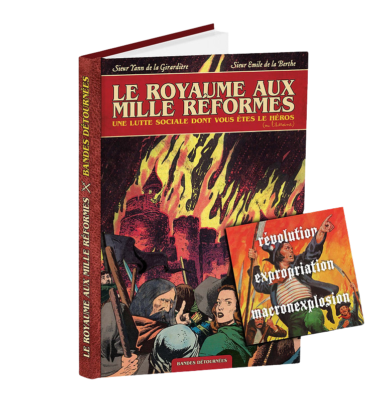 Votre quête vous mènera de la ZAD de Sherwood aux geôles de Castel Droiteausse, des banquets social-féodalistes aux réunions secrètes de la Guilde Du Travail… dans ce livre-bédé dont vous êtes le héros ou l’héroïne, vous devrez faire preuve de charisme/sagesse/radicalité pour faire éclater la révolution !